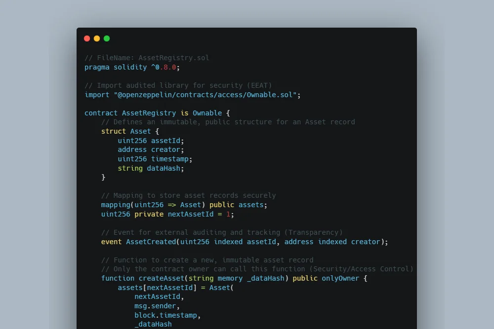 We ensure security by enforcing the Checks-Effects-Interactions (CEI) pattern and mandatory code audits. Our process includes using audited libraries (OpenZeppelin) and conducting external security analysis before any deployment to the mainnet.