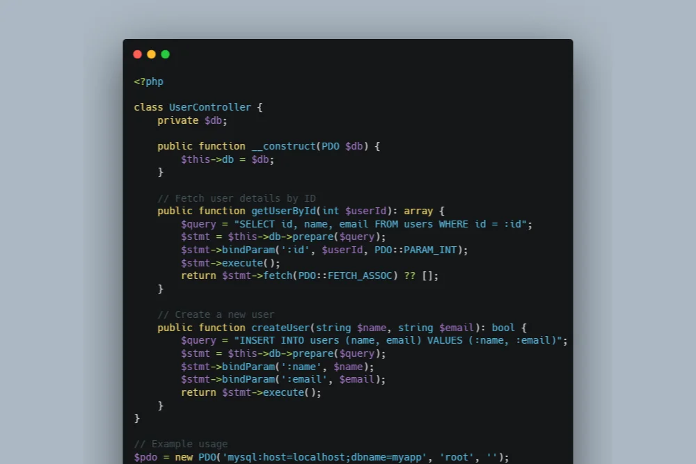 We strictly forbid raw SQL queries. All database interactions must use Parameterized Queries via PHP’s PDO or Laravel’s Eloquent ORM. This is the primary defense against SQL Injection attacks.